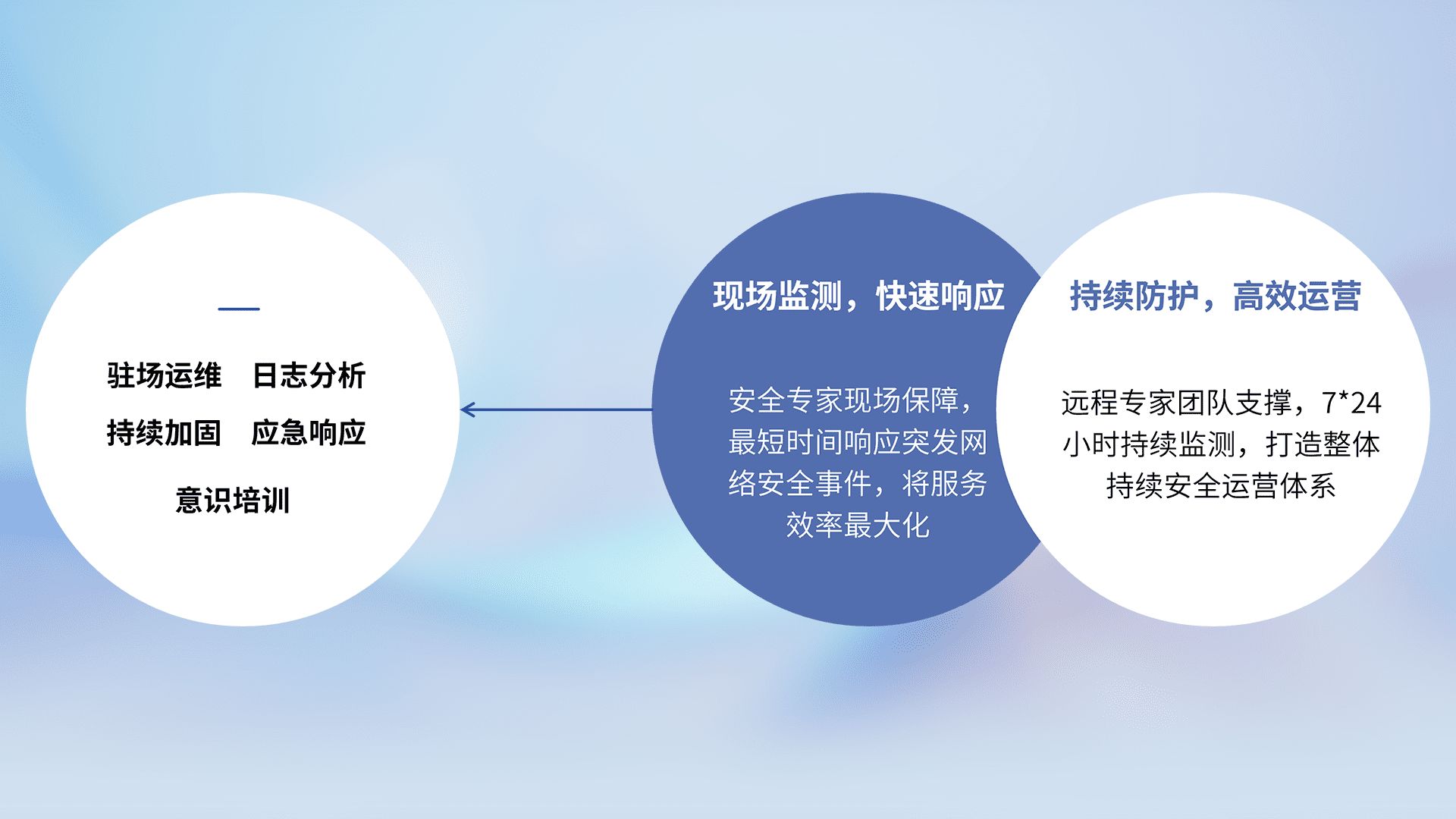 针对客户行业特性,,提供专属的一站式安全管理服务,,帮助客户全面感知网络空间威胁,,,,通过安全专家的线上、、、线下防护支持,,实现风险闭环,,,,将安全保障常态化,,为客户打造常态化安全运维运营服务。。